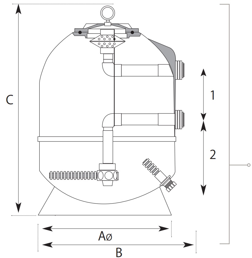 Filter dolazi u kompletu s višeputnim ventilom, koji omogućava jednostavno upravljanje različitim funkcijama filtracije, ispiranja, recirkulacije i pražnjenja.
